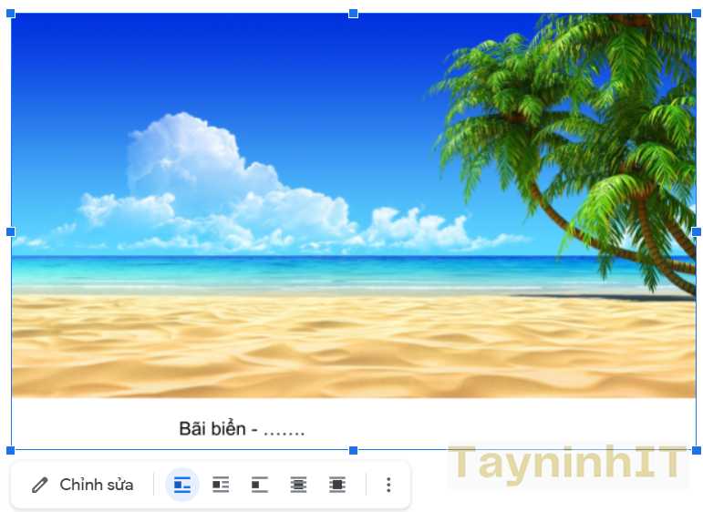 - Bước 2: Đặt con trỏ của bạn bên dưới hình ảnh và bắt đầu nhập văn bản chú thích. Và bạn vẫn có thể định dạng kích thước, căn chỉnh và chọn kiểu chữ bằng thanh công cụ trên cùng như bình thường.