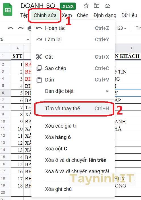 - Bước 1: Mở bảng tính mà bạn muốn tìm kiếm. Trong thanh menu đầu màn hình, nhấp vào “Edit” (chỉnh sửa) > “Find and Replace” (Tìm và thay thế).