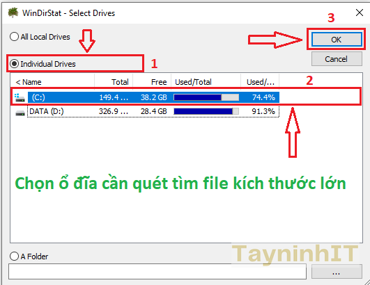 WinDirStat là một ứng dụng nhỏ, đơn giản và quan trọng hơn hết là miễn phí để cho phép bạn tìm các file lớn trong Windows và hình dung chúng để so sánh tốt hơn. Các bước thực hiện bên dưới: