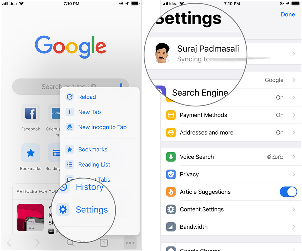 - Bước 2: chọn Settings (Cài đặt) --> chọn tài khoản Google của mình.