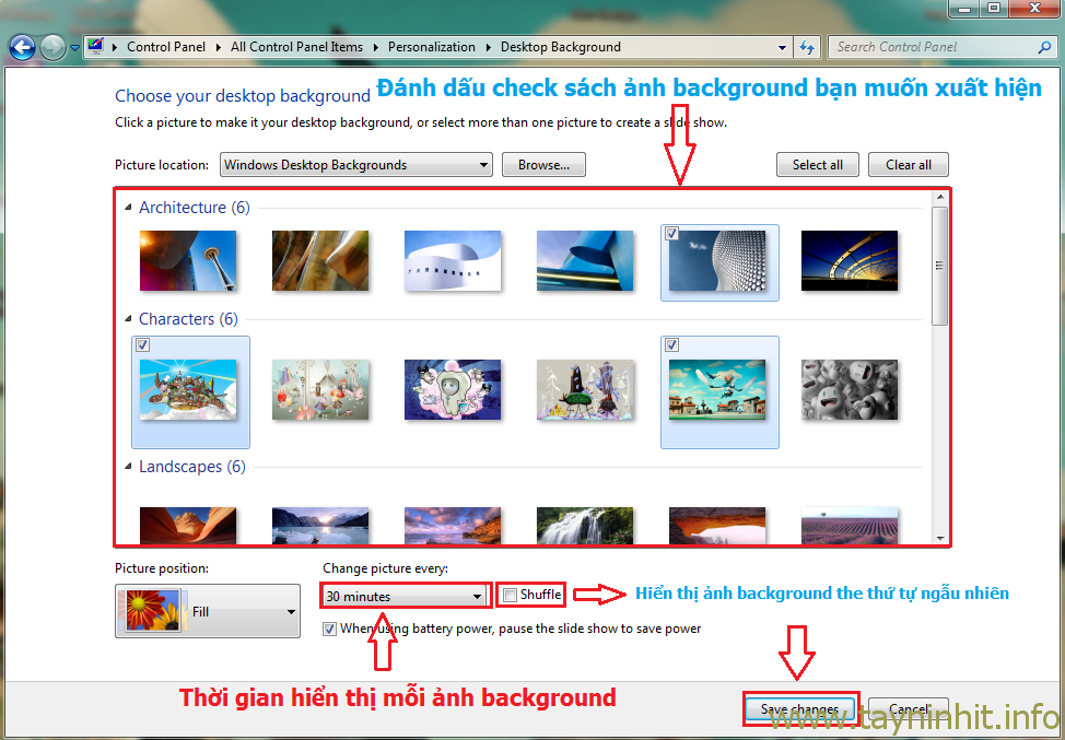- Bước 6: Để hiển thị các ảnh background theo một thứ tự ngẫu nhiên, kích tùy chọn Shuffle.