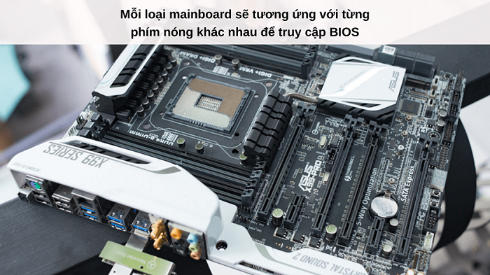 Một lưu ý rằng hotkey (phím nóng) dùng để vào BIOS mainboard sẽ khác nhau tùy vào từng dòng mainboard trên máy tính PC. Vì thế, bạn cần nắm rõ mainboard bên trong thùng PC để có thể nhấn chính xác hotkey vào BIOS. Cụ thể như sau: