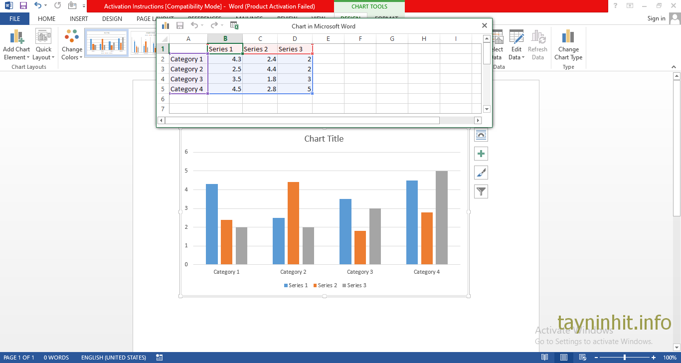 - Bước 4: Bạn có thể thay đổi thông tin và số liệu cho biểu đồ tương tự như hình dưới đây