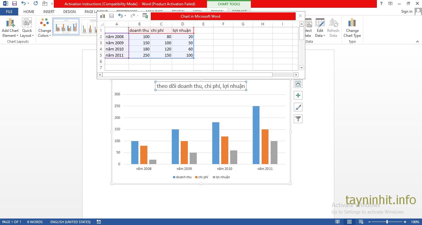 Trước đây chúng tôi đã hướng dẫn các bạn cách vẽ đồ thị trên Excel. Hôm nay, chúng tôi hướng dẫn các bạn vẽ đồ thị trên word với 4 bước bên dưới: