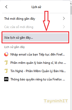 - Bước 2: Ở hộp thoại "Lịch sử", các bạn chọn tiếp "Xóa lịch sử gần đây"