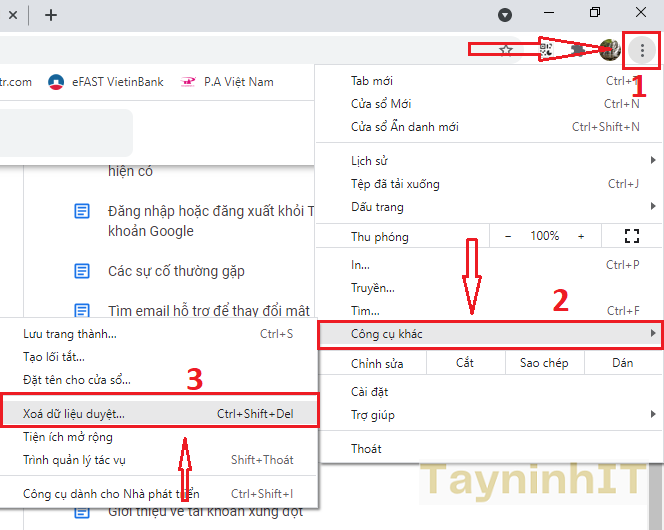 Để xóa Cookies, cache, lịch sử, mật khẩu... bạn vui lòng thực hiện theo hướng dẫn sau: