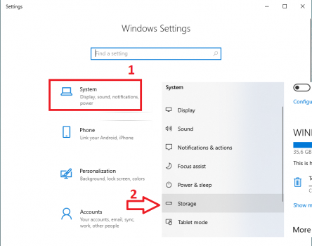 - Bước 1: Nhấn Windows + I => Settings => sau đó chọn System => và nhấn tiếp vào Storage.