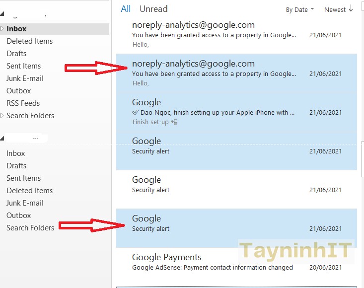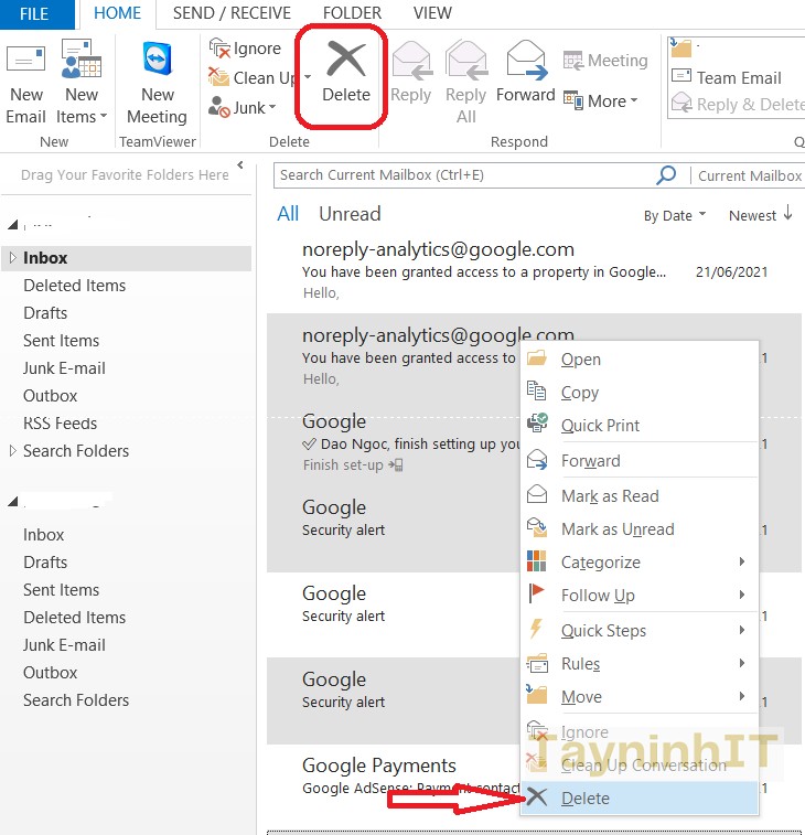 Trường hợp 1: Xóa nhiều thư email trong hộp thư đến Outlook