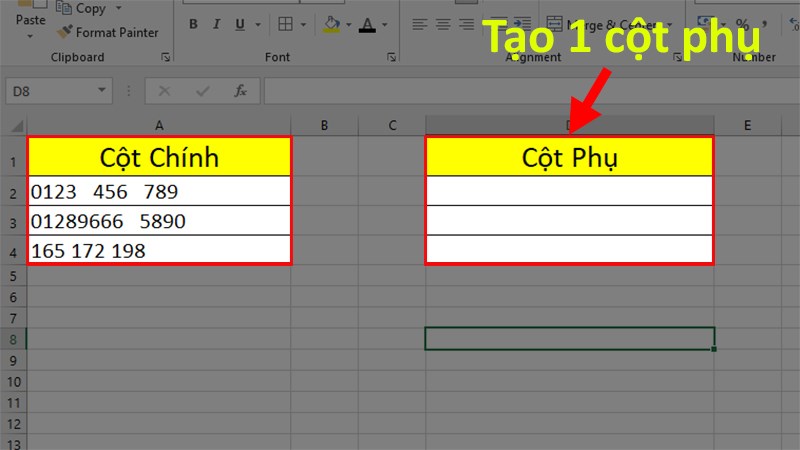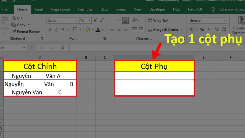 Bước 1: Mở file Excel có chứa dữ liệu cần xóa khoảng trắng > Tạo 1 cột phụ.