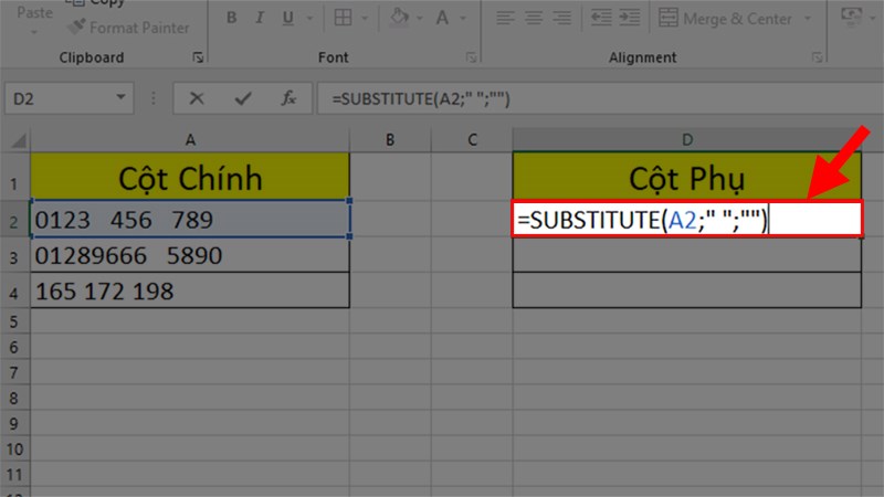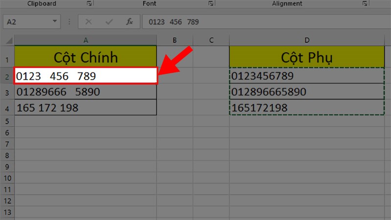 Cách 3. Loại bỏ toàn bộ khoảng trắng giữa các số