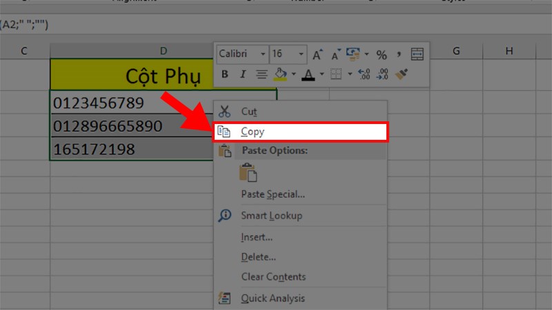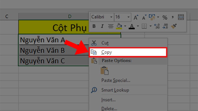 Bước 4: Copy toàn bộ ô ở cột phụ.