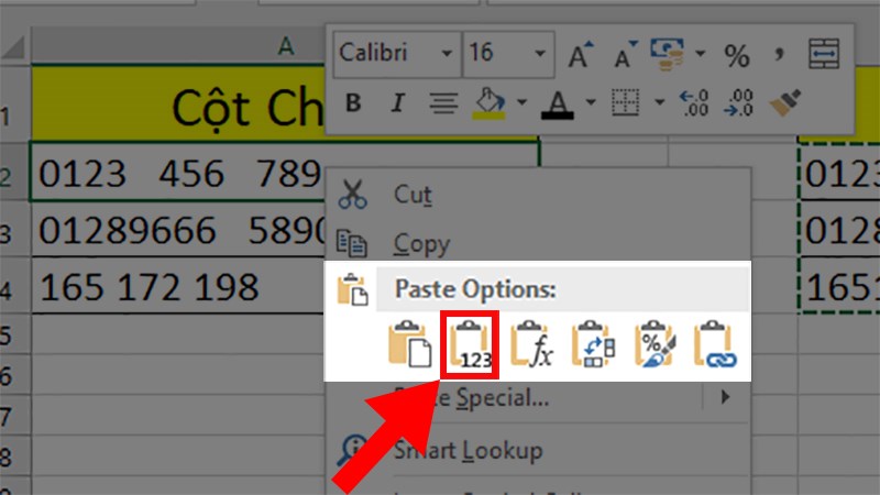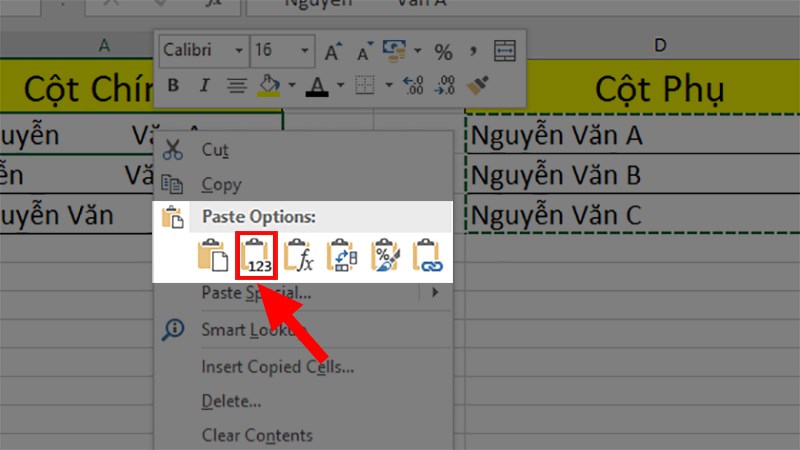 Bước 6: Nhấn chuột phải > Chọn mục value Value ở phần Paste Options.