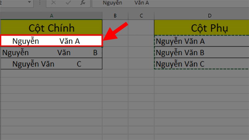 Bước 5: Chọn ô đầu tiên của cột chứa dữ liệu cần xóa khoảng trắng.