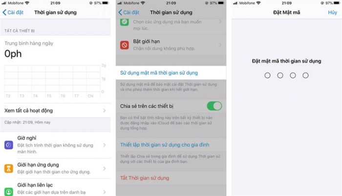 Với Thời gian sử dụng trên Iphone, bạn có thể đặt mức cho phép và giới hạn cho việc sử dụng ứng dụng, đặt lịch trình giờ nghỉ.Ngoài ra, bạn có thể thay đổi hoặc tắt bất kỳ cài đặt nào bất kỳ lúc nào.