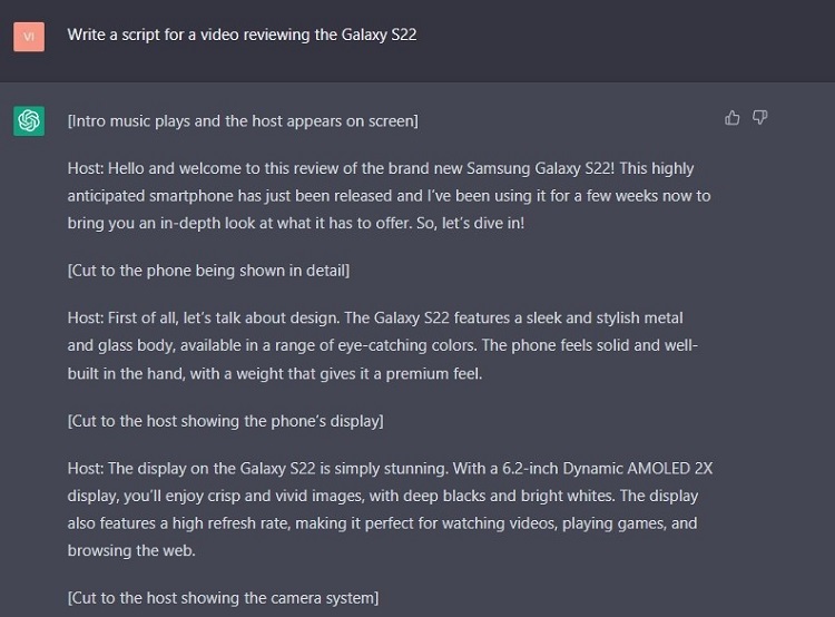 ChatGPT có thể viết trôi chảy, nhưng không hiểu ý nghĩa các từ. Chẳng hạn với yêu cầu này, AI cho dù chỉ có dữ liệu đến năm 2021 vẫn "review" lưu loát sản phẩm ra mắt năm 2022 theo mô típ đánh giá sản phẩm thường thấy trên mạng, đưa ra nhiều thông tin sai thay vì từ chối trả lời. Ảnh: OpenAI.