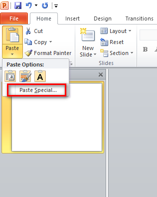 - Bước 2: Mở PowerPoint -> Home -> Paste -> Paste Special.
