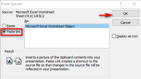 - Bước 3: Xuất hiện hộp thoại Paste Special, chọn Paste Link -> OK.