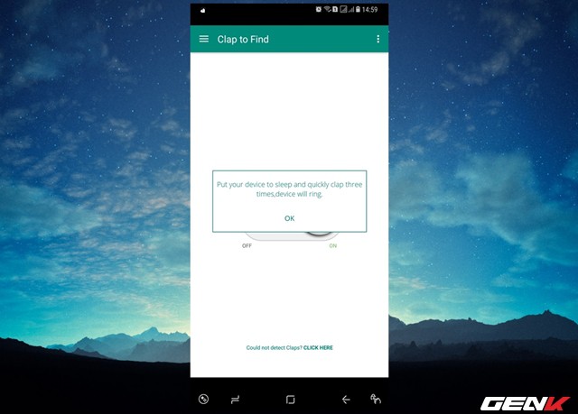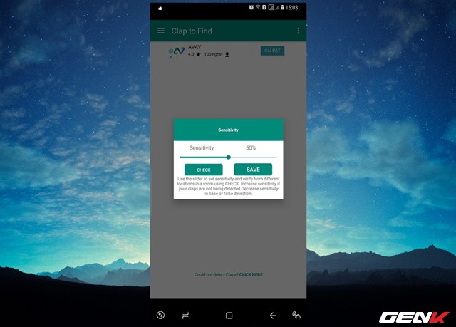 Trường hợp nếu bạn vỗ tay mà thiết bị không hồi đáp, hãy nhấp vào dòng “Could not detect Claps? Click here” để điều chỉnh mức độ nhận diện âm thanh (Sensitivity) của ứng dụng.