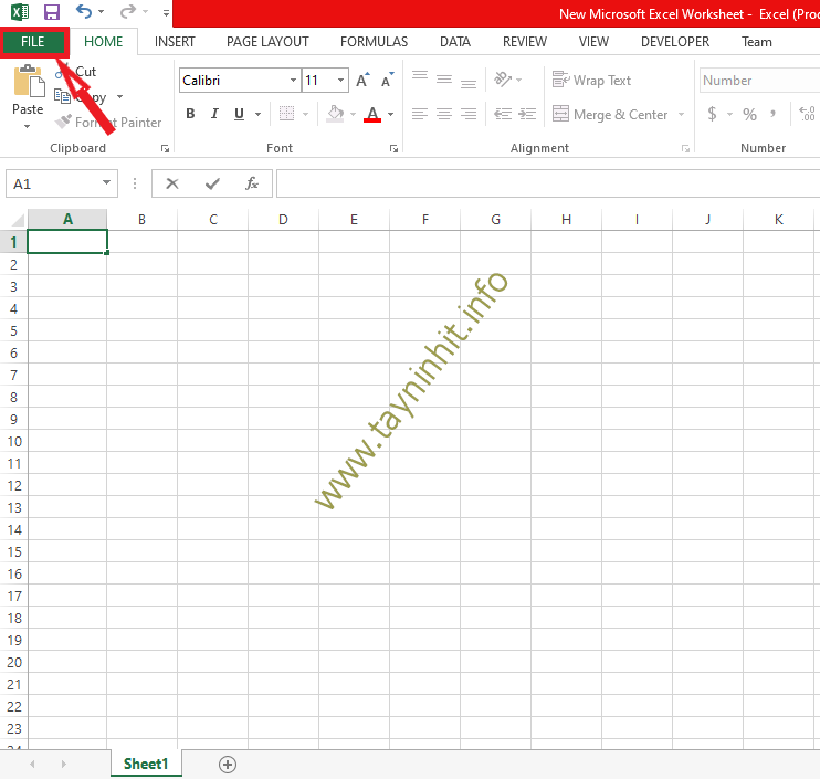 - Bước 1: Chọn File trên thanh menu của Excel.