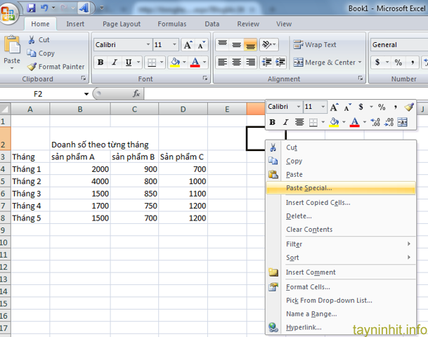 - Bước 2: Đặt con trỏ chuột vào vị trí cần dán dữ liệu > click chuột phải > chọn Paste Special