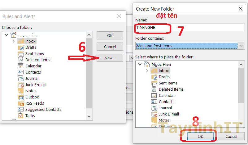 - Bước 4: Xuất hiện hộp thoại nếu bạn muốn tạo Foder mới bấm New > đặt tên ở cột Name > OK