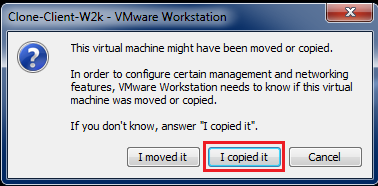- Bước 5: Hộp thoại bên dưới sẽ hiện thị lên để hỏi bạn là máy ảo này bạn Copy hoặc Move nó đến máy tính này. Bạn chọn "I Copied it" để tiếp tục.