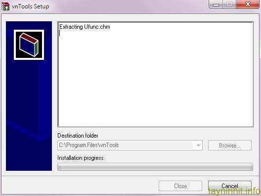 và chọn file Ufunctions.xla trong C:\Program Files\vnTools. vnTools xuất hiện ở dạng thanh công cụ, có hộp thoại thao tác tương tự như các hàm của Excel - trong đó bạn có thể chọn ô chứa số cần chuyển đổi, ô chứa chuỗi kết quả...