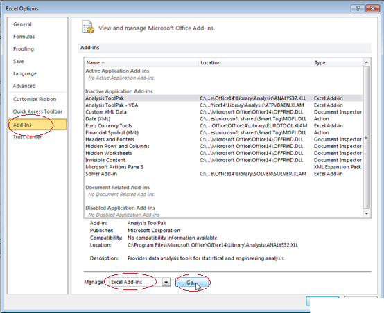 + Chọn "Add-Ins" chọn "Excel Add-Ins" cuối cùng chọn "Go"