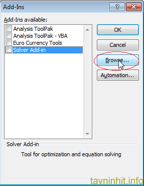 + Tại màn hình "Add-Ins" bấm chọn "Browse"