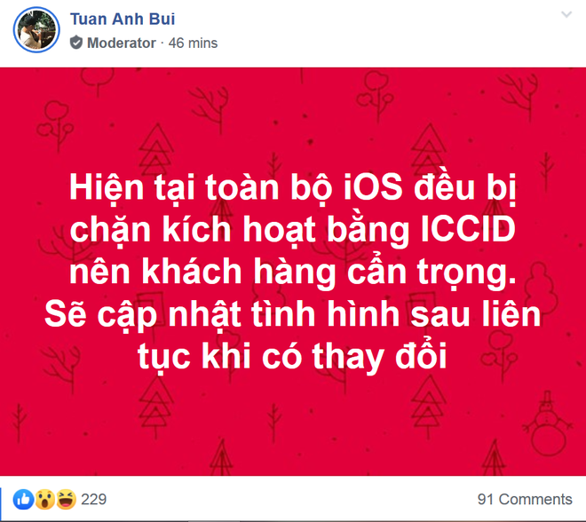 Rạng sáng hôm nay (20/7), hàng loạt người dùng iPhone Lock tại Việt Nam đã không thể kích hoạt được thiết bị của mình. Thậm chí, người dùng đã lắp SIM ghép với ICCID còn sống và cập nhật phiên bản iOS mới nhất. Nhưng máy vẫn đứng ở màn hình "Lỗi kích hoạt".