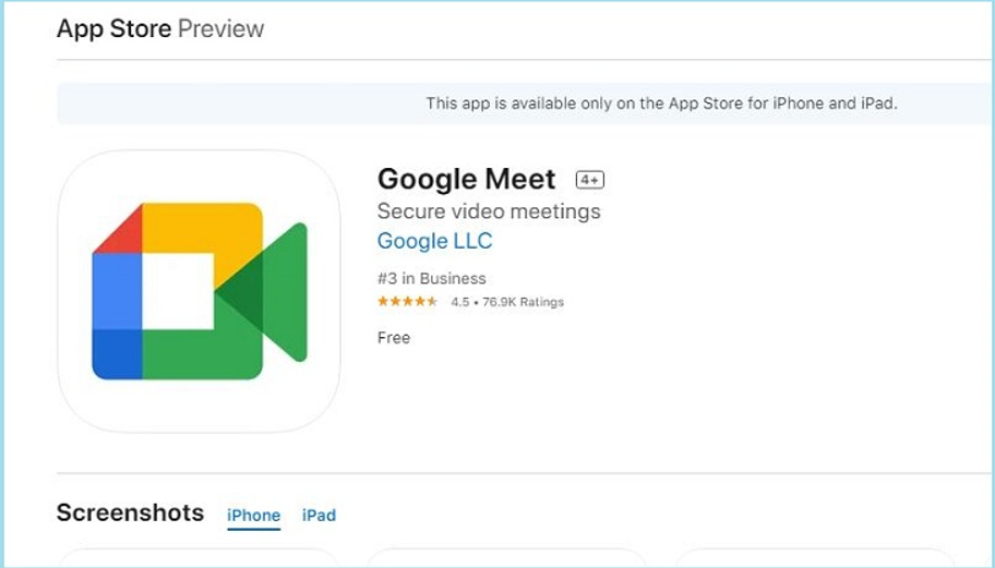 - Bước 1: Truy cập trang tải Google Meet trên Apple Store