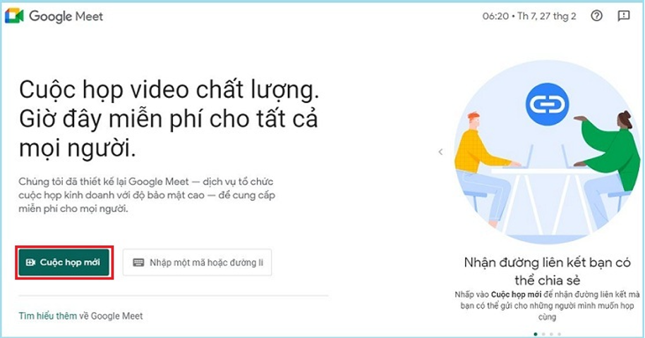 - Bước 1: Truy cập vào trang Google Meet