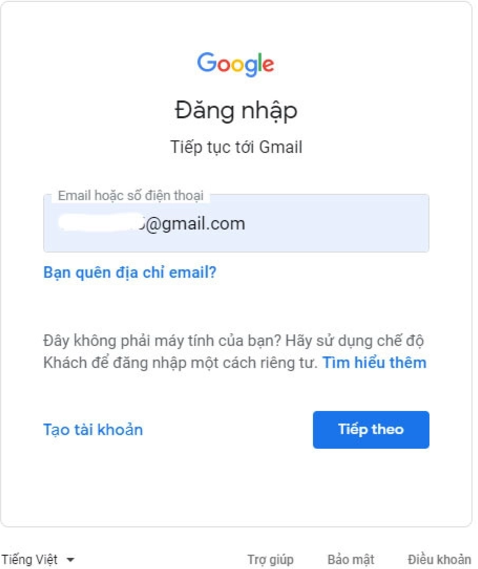 Đăng nhập vào tài khoản Google của bạn bằng thông tin đăng nhập của bạn. Đầu tiên, nhập địa chỉ email của bạn và bấm vào Tiếp theo .
