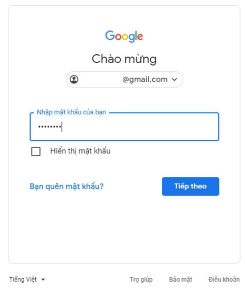 Tiếp đó, nhập mật khẩu đăng nhập của bạn và bấm vào Tiếp theo.