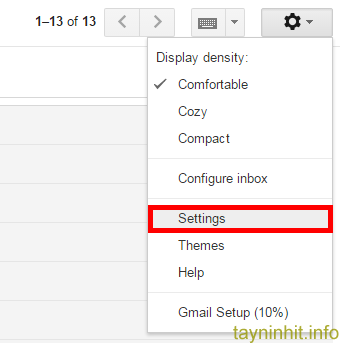 - Đăng nhập vào hộp thư gmail của mình, Vào phần Setting (Cài đặt) biểu tượng hình bánh xe --> Settings
