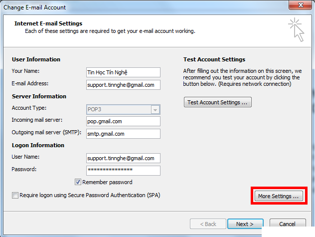 2) Cấu hình Gmail trong Outlook 2007