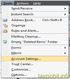 Sau khi đã thiết lập Gmail xong, mở Outlook 2007 và vào phần Tools -> Account Settings…