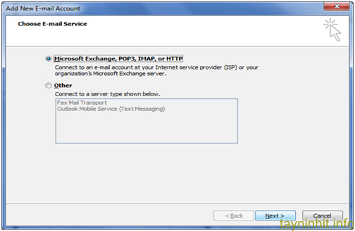 Cửa sổ Add New E-mail Account xuất hiện, click vào Next