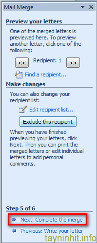 Cuối cùng, sau khi đã chèn xong như hình trên, ta tiếp tục chọn Next: Complete the merge