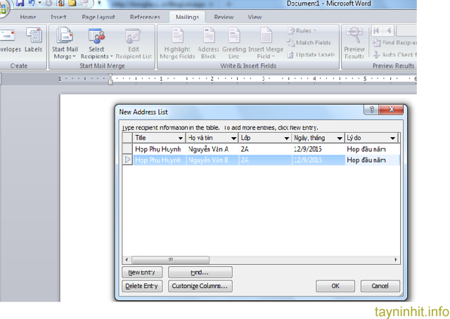 Mail Merge trong Word