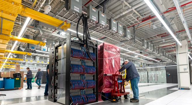 Siêu máy tính Frontier gồm 74 tủ máy tính HPE Cray EX, mỗi tủ nặng khoảng 3,6 tấn. Ảnh: Lisa Su.