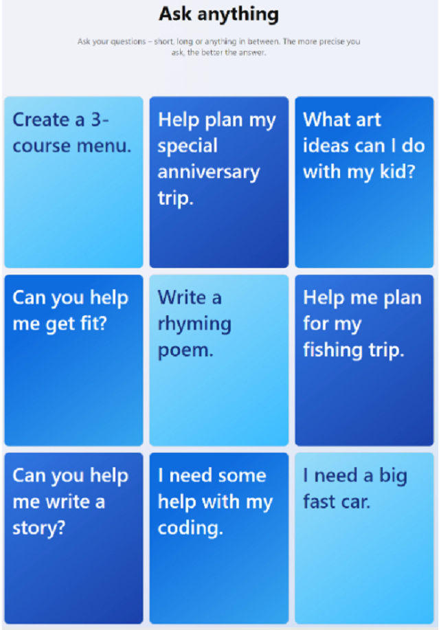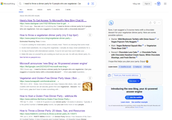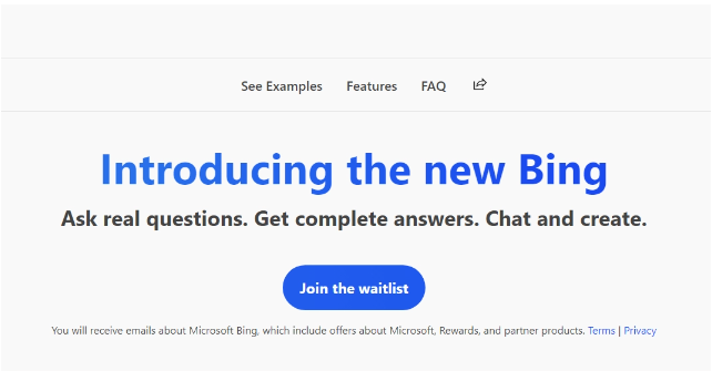 Tuy nhiên, một điều đáng tiếc là hiện tại bạn chỉ có thể sử dụng Bing mới để hỏi một số câu cụ thể và phải tham gia vào danh sách chờ của Microsoft để được tiếp cận đầy đủ tính năng trong thời gian tới. Microsoft cho biết, bạn sẽ được ưu tiên tiếp cận cao hơn nếu đăng nhập bằng tài khoản Microsoft, dùng các mặc định của Microsoft trên máy tính và tải ứng dụng Bing. Sau khi tham gia vào danh sách chờ, bạn sẽ nhận được email xác nhận và sẽ được thông báo khi được tiếp cận trải nghiệm Bing mới.