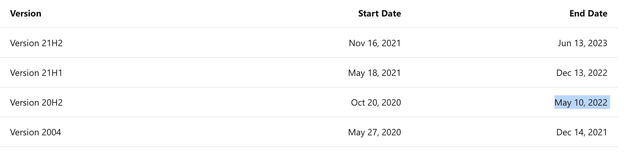 Cụ thể, phiên bản Windows 10 20H2 sẽ hết vòng đời vào tháng 5. Chính xác là ngày 10 tháng 5, có nghĩa là trong ba tháng ngắn ngủi, bất kỳ ai vẫn đang chạy phiên bản Windows 10 này sẽ không còn đủ điều kiện nhận hỗ trợ từ Microsoft. Và đây là lý do tại sao Microsoft đang có kế hoạch buộc người dùng cập nhật lên phiên bản hệ điều hành được hỗ trợ.