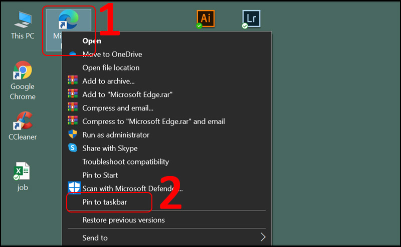 Nhấn chuột phải vào bất kì biểu tượng nào bạn muốn ghim > Chọn Pin to taskbar để ghim.