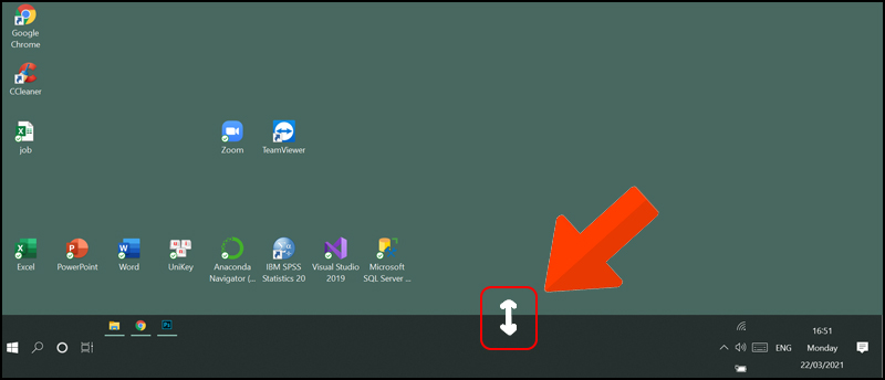 - Bước 2: Kéo lên xuống để điều chỉnh độ lớn của thanh Taskbar.