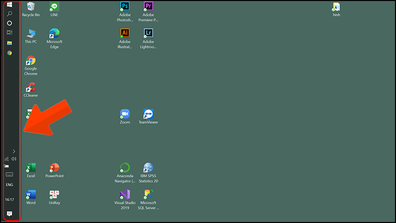 - Bước 2: Kéo giữ chuột taskbar sang phải, trái, trên hoặc dưới theo ý của bạn.