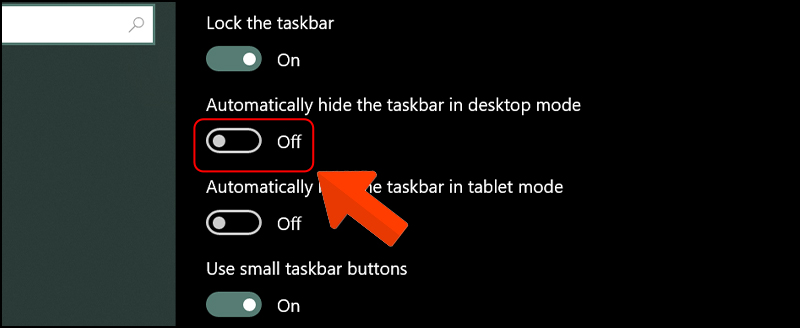 - Bước 2: Trong mục "Automatically hide the taskbar in the desktop mode", gạt sang phải để bật.