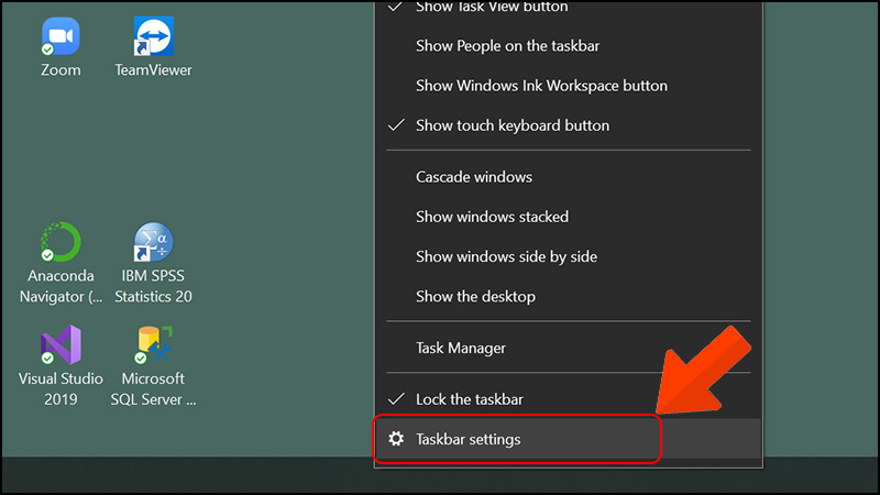 + Bước 1: Nhấn chuột phải lên thanh Taskbar > Chọn Taskbar settings.
