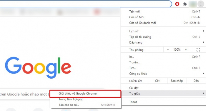 - Bước 2: Truy cập phần trợ giúp và chọn giới thiệu về Google Chrome