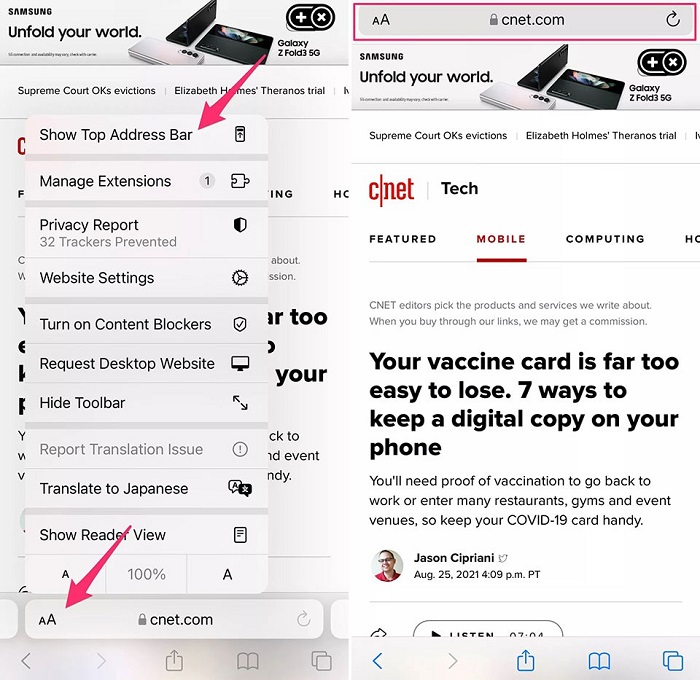Di chuyển thanh địa chỉ của Safari trở lại đầu màn hình
